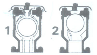 Durante la secuencia de agotador, el aire que fluye alrededor de la bola boya produce una fuerza hacia abajo resultante que mantiene la bola en la posición abierta.